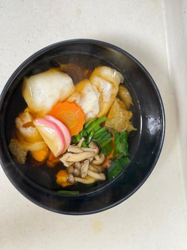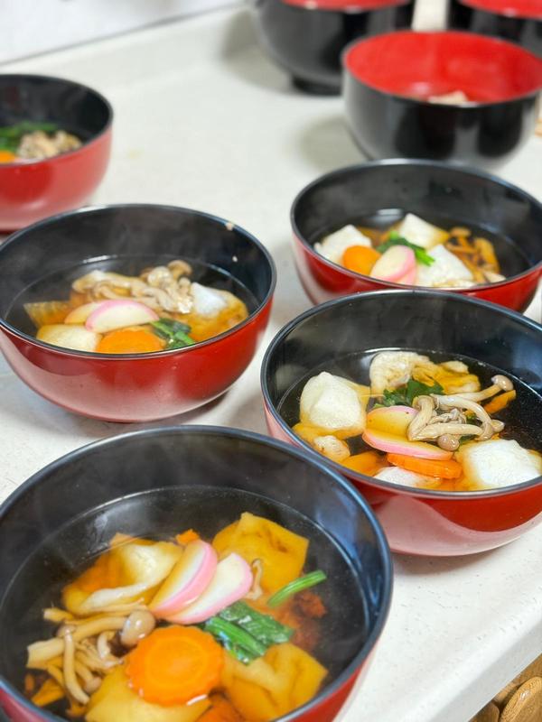 先ずはお雑煮で新年のご挨拶 花の人参にしてみました(気づいてくれた?) A.T