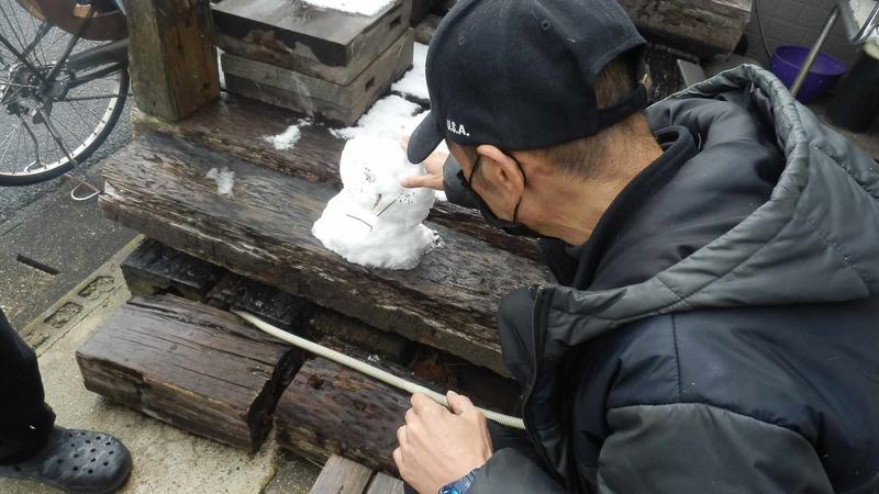 昨日1月12日は雪が降って、利用者さんと職員さんが雪だるまを作りました。